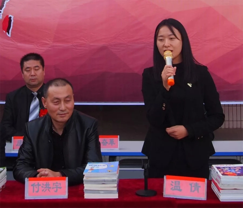 温倩发表讲话。爱心传递真情,书籍成就梦想。启明公益基金会将继续秉承着“启迪爱心,明净心灵”的宗旨和“老吾老以及人之老,幼吾幼以及人之幼”的理念,积极推动公益慈善事业和教育文化事业向着更美好的方向发展。