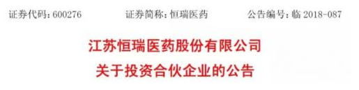 不过恒瑞也提醒投资者:截止目前,各合伙方尚未实际出资。