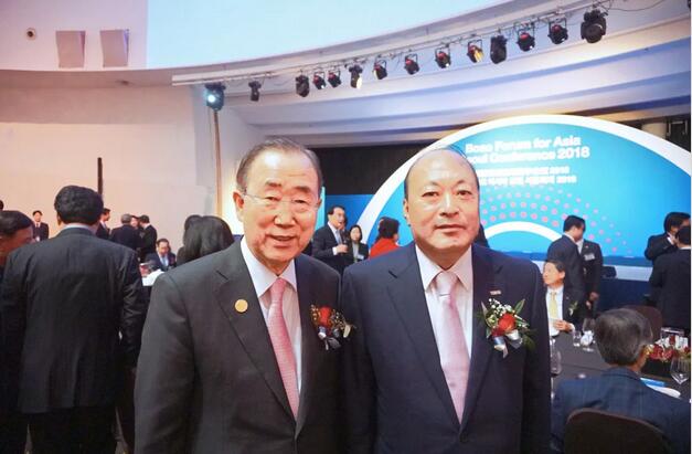 天狮集团董事长李金元与亚洲论坛理事长、第八任联合国秘书长潘基文合影