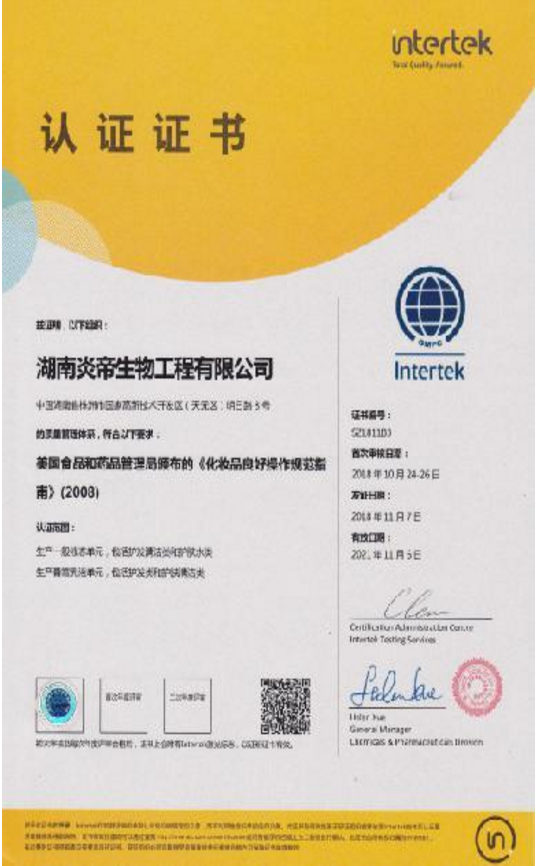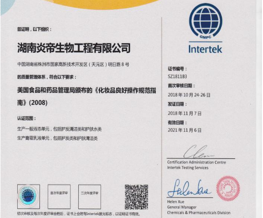 岁末年终之际,炎帝生物佳音频传,继9月份葛仙米被国家纳入新资源食品原料序列后,近日又传来好消息,炎帝生物化妆品车间正式通过美国FDA版GMPC认证,这意味着炎帝生物生产的日化品其安全标准已达到国际先进水平,打开了进军美国乃至全世界市场的大门。