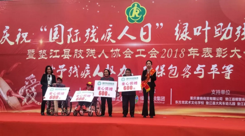 11月25日下午2:00,垫江县肢残人协会工会2018年表彰大会以及大型文艺汇演如期举行。绿叶科技集团重庆分公司经理罗倩代表绿叶科技集团出席活动并参与捐赠。