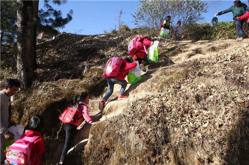 禄劝彝族苗族自治县丰租小学70%的孩子是留守儿童,学前班的孩子每天由爷爷奶奶接送,最远的要走一个小时的山路。学校坐落于山路环绕的大山间,有学前班、一年级和二年级共计41名学生、3名老师。虽然近年来在相关政策扶持下,学校的教学环境有了很大改善,但是在高寒山区恶劣的条件影响下,孩子们通红的小脸和被冻裂的小手,成了绿基金志愿者们最揪心的事情。