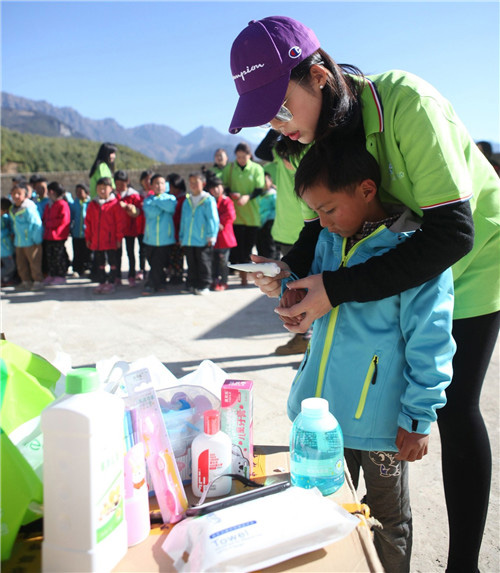 这次绿基金志愿者们从公司近三千款产品中精选适合高寒山区孩子们的生活用品,包括护手霜、擦脸霜、洗手液、儿童牙膏、牙刷、毛巾等日常洗护用品,让学校里每一位孩子度过一个温暖的冬季。绿基金志愿者们还编排了简单易懂的“洗手舞”,和孩子们一起聊学习、话家常、玩游戏、合影留念。在游戏中,孩子们不知不觉增强了友谊,缩短了与绿基金志愿者们的距离,孩子们稚嫩的小脸蛋上绽放出天真灿烂的笑容。
