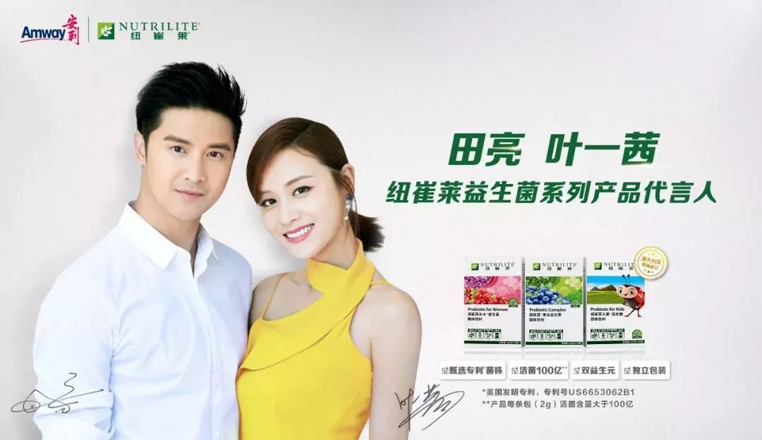 田亮叶一茜担任安利纽崔莱益生菌代言人