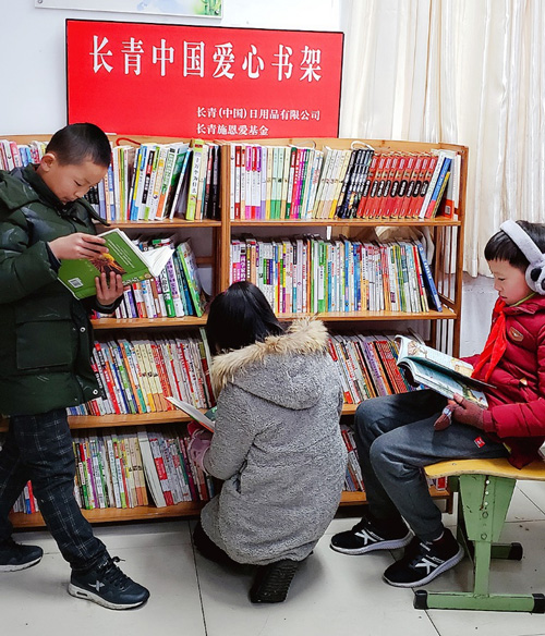 爱心书架是长青公司2018年开展的一项关注留守儿童的公益项目,除了在虹口小学,长青公司相继在山东、西安、重庆和云南,共捐赠了100个爱心书架。