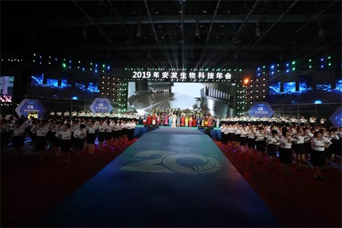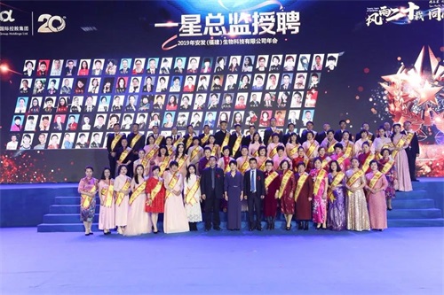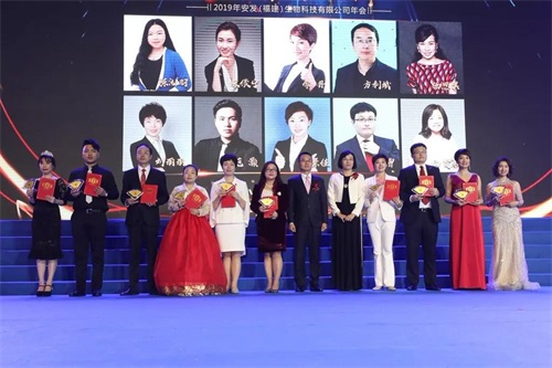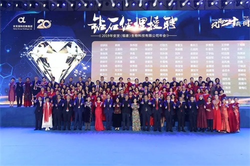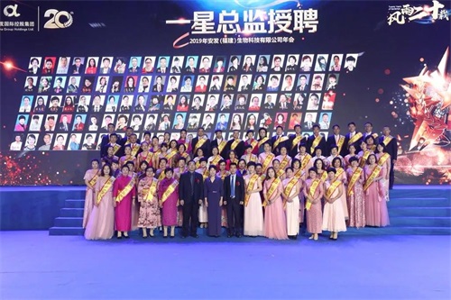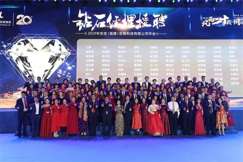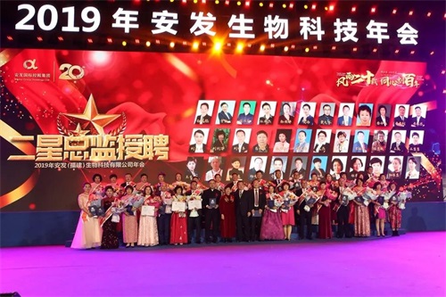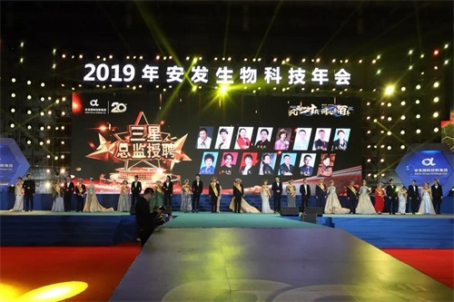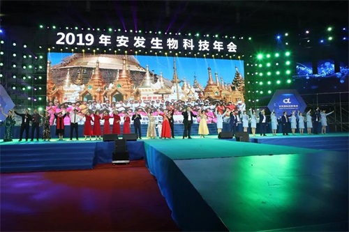 在闪耀的安发大舞台,不仅有荣耀,更有一大波安发人自编自导自演的节目在倾情上演,精彩无限,快乐无限!《十二故事》情景剧,再现了高教授69年来风风雨雨、跌宕起伏,创立安发,带领安发从小到大,从弱到强发展的传奇经历,让全体家人感慨万千,更加坚定了“传承爱,传承健康”的创业初心;《感恩的心》由大人和小孩共同表演,结合舞蹈,通过大屏幕放映了安发生物投身社会公益事业的一幕幕,淋漓尽致地诠释了安发人饮水思源,回报社会之心;安发国际及安发生物高管与市场精英同台高唱《安发之歌》,500名安发家人伴舞,气势如虹,充分展现了安发人的精神面貌,尽情诉说着安发人激情创业、锲而不舍、追求卓越的优秀品质,令台下观众为之动容,发自内心地欢呼、鼓掌,不自觉地跟着唱了起来;一家十多人和祖孙三代都从事安发事业的代表性家庭集体合唱《明天会更好》,更是引爆了全场气氛,让全场嘉宾和广大安发情不自禁地一起高唱,以自己的感激、感恩和衷心祝福把大会推向了最高潮。