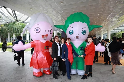 此次庆典,处处华彩、处处快乐中洋溢着浓浓的安发文化气息。映入眼帘的厦门国际会展中心,巨大的安发年会广告牌,熟悉的主题蓝,铭刻在心灵上的安发、银蕨标志冲击着每一个过往者的视觉。一路行进,一路彰显着安发的荣耀。而还未进入会场,许多人便被安发首次公开亮相的超萌吉祥物——安安和发发吸引了目光。身着红裙的女萌娃安安,穿绿色衣服的男萌娃发发,两个吉祥物头戴银蕨帽,完美嵌入安发元素,在场内外与大家快乐互动,现场跟大家握手、拍照,成为庆典吸粉小能手。