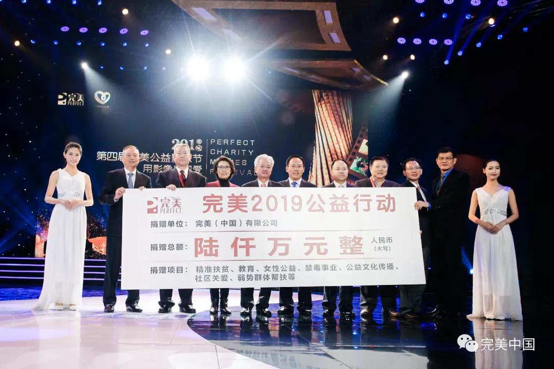活动现场,完美公司向中国禁毒基金会、中国妇女发展基金会、中国华文教育基金会、中国青少年发展基金会、广东省慈善总会、中山市慈善总会等共计捐资6000万元,用于开展禁毒事业、精准扶贫、教育、女性公益、公益文化传播等公益项目的开展。