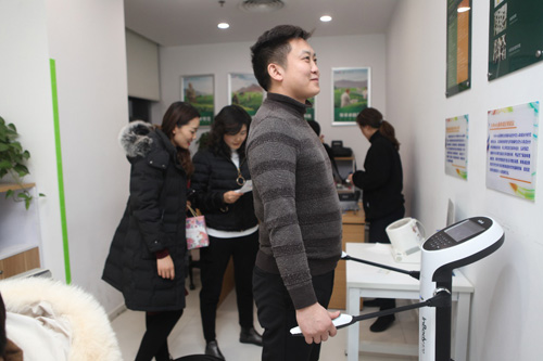 骨密度、肌肉量、脂肪占比、血压……签到领取体检卡后,准爸妈们移步两楼,进行身体检测,看看自己是否已经准备好孕育宝宝。