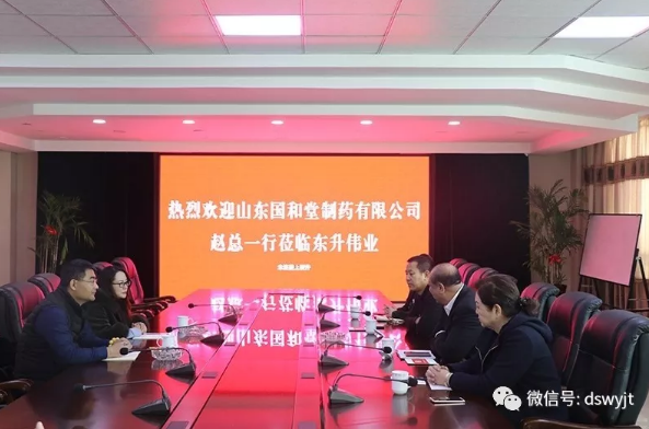 2018年12月9日山东国和堂制药有限公司总经理赵言奎先生、销售总监张磊女士一行莅临吉林东升伟业集团公司参观考察。