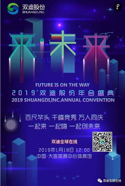回顾过去,展望未来!见证每一位双迪伙伴的成长,见证每一位双迪伙伴的荣耀,期许每一位双迪伙伴的蜕变……2019年1月18日,“来·未来—2019双迪股份年会盛典”即将召开!未来已来, 我们一起来2019年~