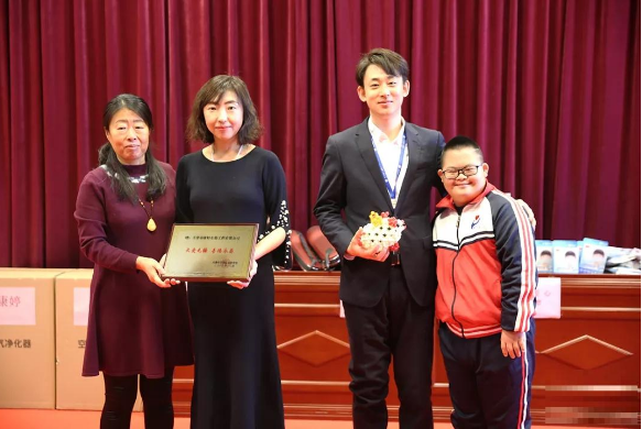 温暖传递,大爱无疆!罗曼·罗兰说,“爱是生命点亮的火焰,没有它,一切都会变成黑夜”。启智学校的天使们是独一无二的生命,虽然折翼,但有学校全体老师细心、耐心、专心的教育,有社会各界人士对孩子的关怀与关爱。又到了一年当中雾霾肆虐的时节,为了给小天使们捧起一片蓝天,让他们拥有一个健康的未来,值此之际,康婷集团给孩子们送来了康婷空气净化器、PM2.5颗粒物防护口罩、葫芦丝等价值24000余元的新年礼物。康婷空气净化器、PM2.5颗粒物防护口罩可以让孩子们随心呼吸,净享清新,为孩子们营造舒适、便利、健康、愉悦的校园环境;葫芦丝可以丰富师生们的活动与生活,一起练习、一起演出,培养孩子们的爱好并愉悦身心。