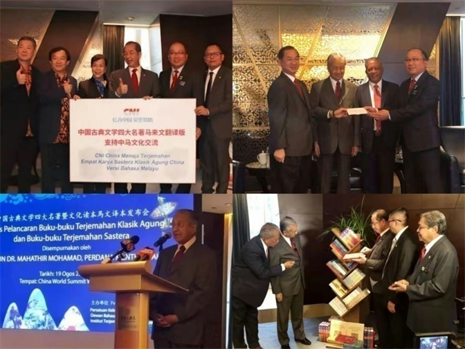 中国四大名著《红楼梦》、《三国演义》、《西游记》、《水浒传》首次有了马来文的版本。多位马来西亚翻译家历经十多年坚持不懈的努力,完成了四大名著的翻译工作。在长青中国的鼎力相助下,陆续出版发行的四大名著让马来西亚读者可以分享到博大精深的中华文化。为了帮助更多的马来西亚年青人了解中国传统文化,长青中国将向两百多所马来西亚的学校图书馆赠送马来文的四大名著。盛夏时节,正在对中国进行正式访问的马来西亚首相马哈蒂尔拨冗出席了在北京举行的四大名著出版发行仪式。首相对长青中国为促进中马文化交流做出的贡献给予了高度评价。