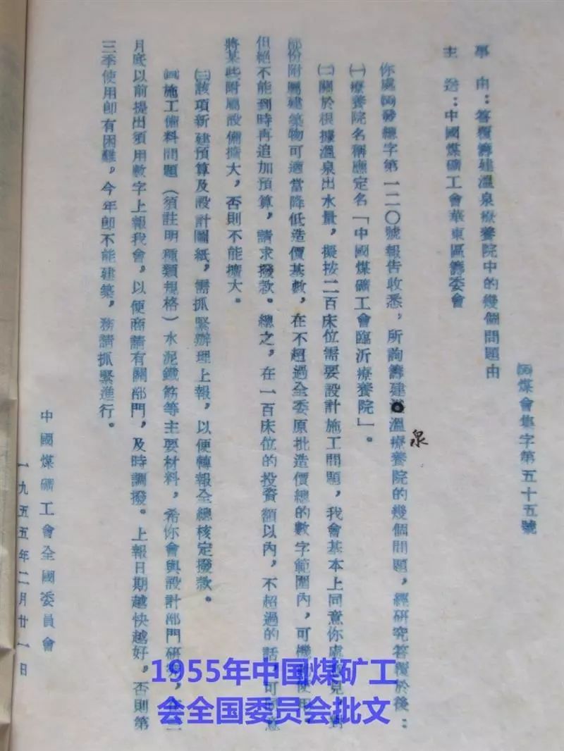 1955年周恩来总理审批临沂市第一家疗养院批文
