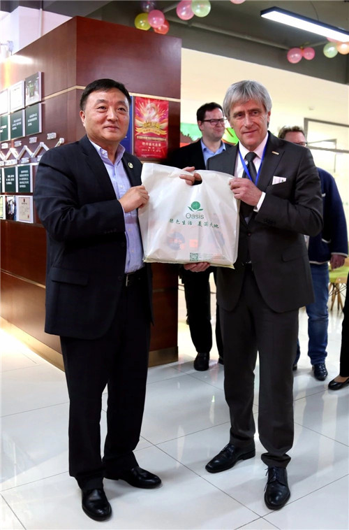 同时,张仁久董事长也向前来访问的各位嘉宾赠送绿活美地精美伴手礼,也再次盛情邀约各位来宾能再一次来到中国、来到绿活美地。