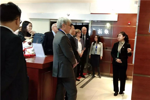 图:德国马格德堡副市长等一行代表观看绿美企业宣传片