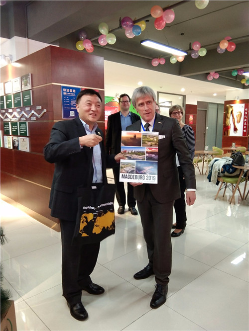 访问最后,张仁久董事长及公司领导与德国马格德堡副市长莱纳·尼采等代表进行了合影。莱纳·尼采副市长还特别向张仁久董事长赠送了具有马格德堡代表意义的精美礼品。