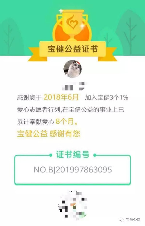 宝健3个1%爱心志愿者均可领取宝健公益证书