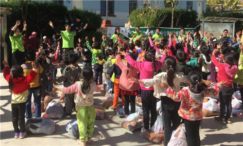 郑家村丰产小学建筑面积500平方米,学校建有一栋教学楼,共有师生100人。绿基金爱心志愿者为同学们带来了过冬的羽绒服和日常洗护用品。绿基金爱心志愿者还教孩子们学习“洗手操”,在与绿基金志愿者的欢乐互动中,孩子们质朴的脸上露出幸福的笑容。