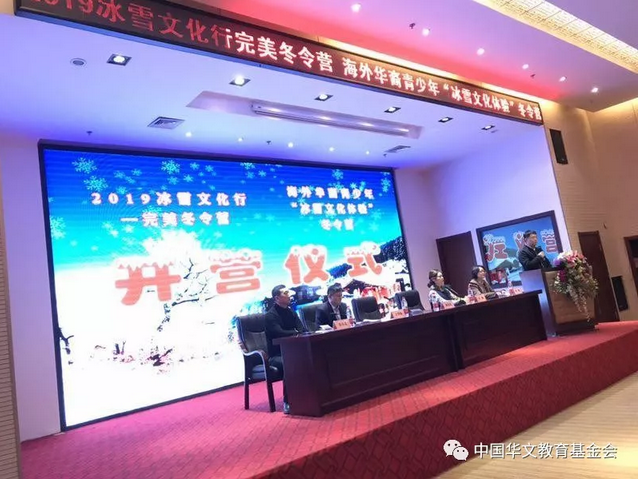 2019年1月13日,由中国华文教育基金会主办、北京华文学院承办、完美(中国)有限公司赞助的“2019冰雪文化行——完美冬令营”在黑龙江省伊春市隆重开营,营员们开始了冰雪之旅。中国华文教育基金会项目一部主任熊志远、北京华文学院院长助理童盛强、伊春市人民政府外事侨务办公室主任张乐文、伊春市文化广电和旅游局副局长王巍等出席了开营式,并为活动授营旗。