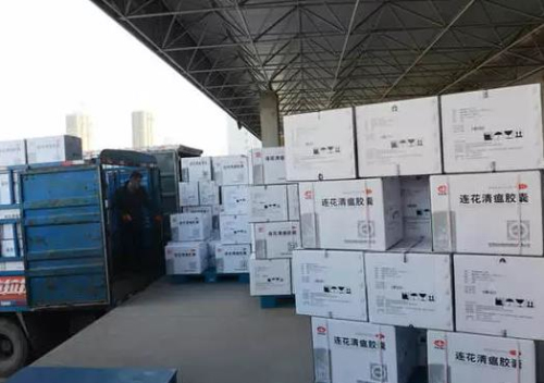 在以岭医药产业园,寒风凛冽,一辆辆载满连花清瘟的大车驶向机场等地,以最短时间快速送到全国各省市。