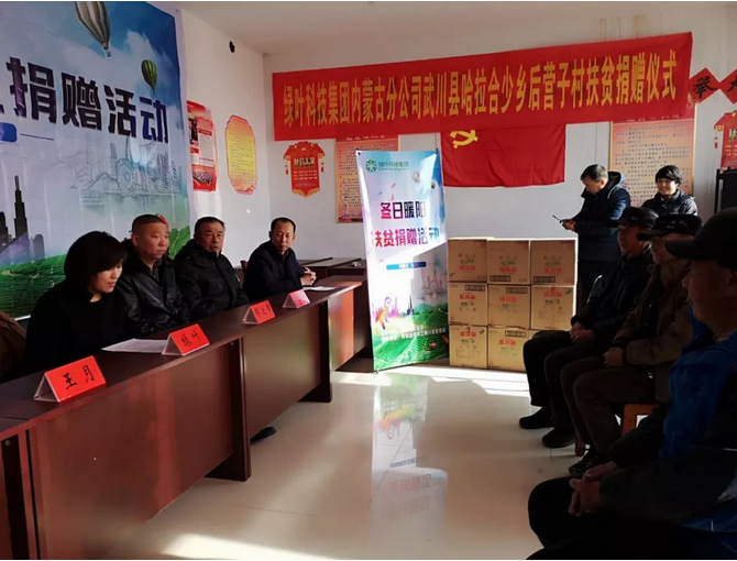 为积极响应国家精准扶贫政策,绿叶科技集团主动与相关部门进行沟通并最终确定向武川县哈拉合少乡后营子村展开精准扶贫捐赠,将绿叶爱心传递到最需要的人身边,为当地打赢脱贫攻坚战贡献绿叶力量。