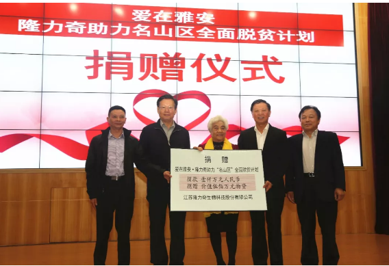 ▲隆力奇对名山区扶贫计划捐赠仪式
