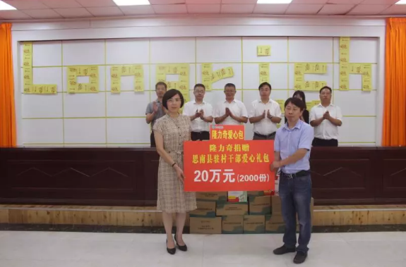 2018年7月,隆力奇携手常熟市辛庄镇政府前往思南县香坝镇开展结对帮扶活动。为关爱思南县驻村干部的生活,隆力奇公司捐赠思南县委组织部价值20万元的爱心大礼包2000份(牙膏、驱蚊花露水、洗发水、沐浴露、牙刷、硫磺皂、止痒凝露等日用品),用于慰问改善全县28个乡镇近2000名驻村干部的生活条件,助力脱贫攻坚。同时,辛庄镇政府对接技术支持,确保对口帮扶成效落到实处,为香坝镇脱贫攻坚,同步小康贡献辛庄力量。