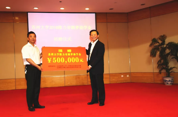 ▲隆力奇捐赠苏州大学50万元助学圆梦奖学金
