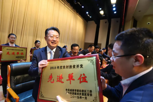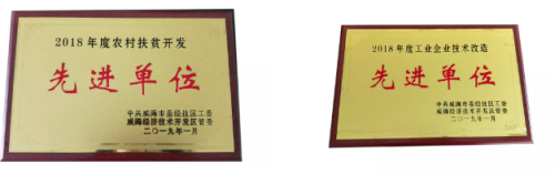 大会对2018年度农村扶贫开发先进单位、2018年度工业企业技术改造等进行表彰,威海紫光代表上台接受表彰并登台领奖。