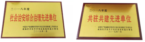 大会对2018年度社会治安综合治理先进单位、2018年度共驻共建先进单位等进行表彰,威海紫光代表上台接受表彰并登台领奖。