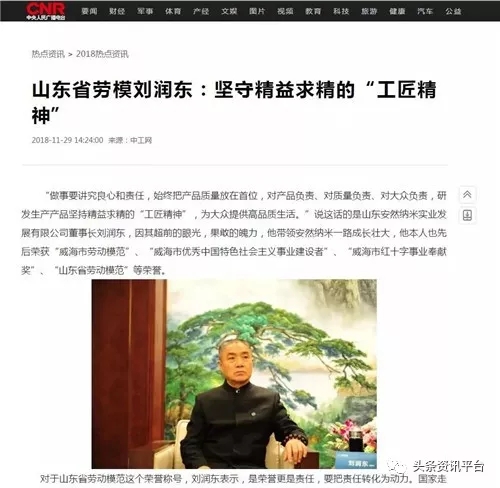 “做事要讲究良心和责任,始终把产品质量放在首位,对产品负责、对质量负责、对大众负责,研发生产产品坚持精益求精的“工匠精神”,为大众提供高品质生活。”说这话的是山东安然纳米实业发展有限公司董事长刘润东,因其超前的眼光,果敢的魄力,他带领安然纳米一路成长壮大,他本人也先后荣获“威海市劳动模范”、“威海市优秀中国特色社会主义事业建设者”、“威海市红十字事业奉献奖”、“山东省劳动模范”等荣誉。