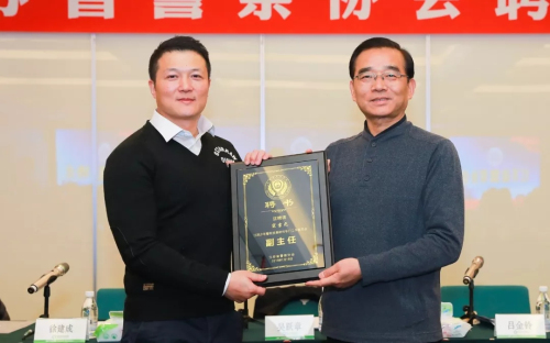 ▲江苏省警察协会会长吴跃章向宗雪之副主任颁发特邀理事聘书