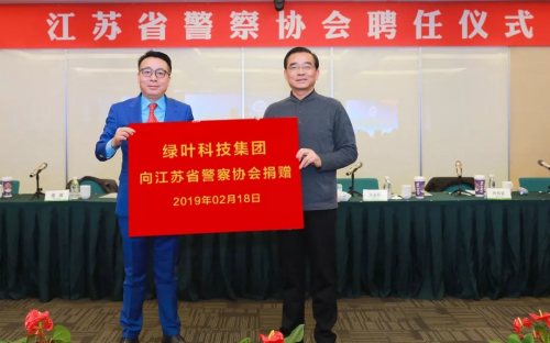 ▲绿叶科技集团徐建成董事长代表绿基金向江苏省警察协会捐赠