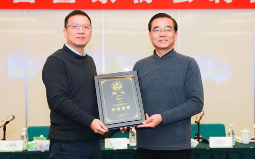 ▲江苏省警察协会会长吴跃章向叶寿泉董事长颁发特邀理事聘书