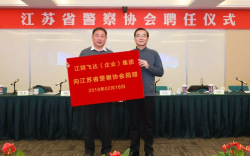 ▲江阴市飞达集团、城镇公交有限公司董事长叶寿泉代表公司向江苏省警察协会捐赠