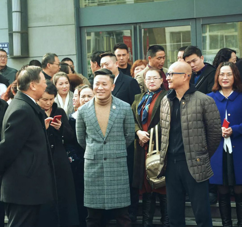 ▲从左往右:杨少英先生、王世桂先生、符士良先生、徐一方先生、崔建先生,集团高管为家人祈福!