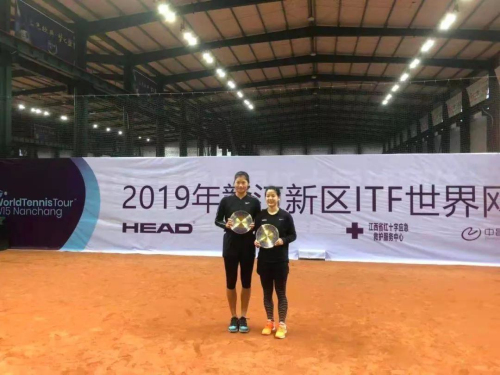 在前几日的2019年ITF国际女子网球巡回赛·南昌站的双打决赛中,4号种子组合郑妩双/曹思齐在挑落1号种子组合后,又迎战2号种子组合Eudice CHONG/Dabin KIM,双方实力非常接近,最终郑妩双/曹思齐7-5、7-6(4)赢得胜利,获得了本站赛事双打冠军!