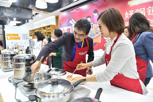位于北京三里屯的北京旗舰体验馆是潘睦邻总裁此次中国行参观的第一站。在安利家居科技教室,正赶上安利皇后锅“美食过大年”社群活动,有了安利皇后锅的神助攻,潘睦邻总裁饶有兴致地为小伙伴们露了一手“无油煎鸡翅”,妥妥美味又健康。