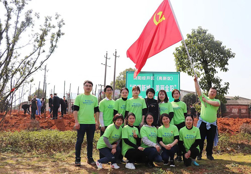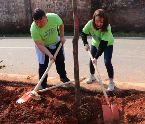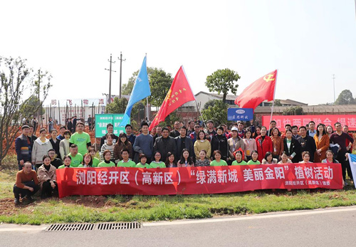 2019年3月12日,在第41个植树节来临之际,绿之韵集团副总裁胡均安、党委书记刘云带领绿之韵党团成员参加了以“绿满新城 · 美丽金阳”为主题的义务植树活动。