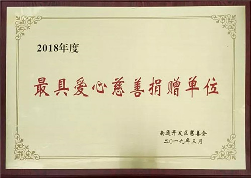 安惠公司获2018年度最具爱心慈善捐赠单位