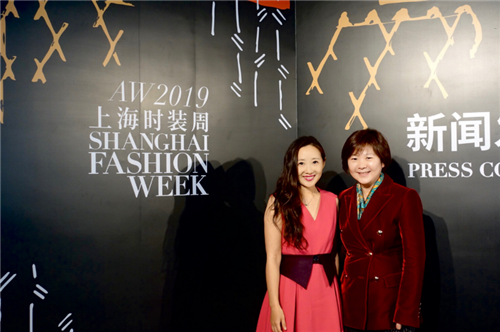 玫琳凯(中国)品牌负责人张晶女士与上海时装周组委会副秘书长吕晓磊女士在上海时装周发布会合影