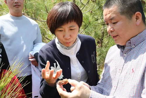 专家首先走进深山里的松林,观察当地农户在高山上采集原材料的过程,与公司技术人员深入交流松花粉的品相鉴定和源头把控的专业知识。专家还专程来到农户家中,了解松花粉的晾晒和脱粉过程,通过观、闻、品、察等步骤检验松花粉原材料的品质。