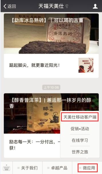 进入微信公众号—微应用—天美仕移动客户端(4月1日启用)