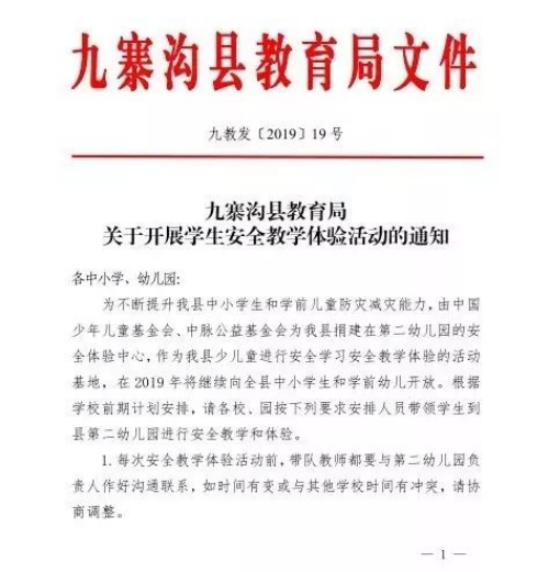 (九寨沟县教育局发出通知作安全体验中心开放安排)