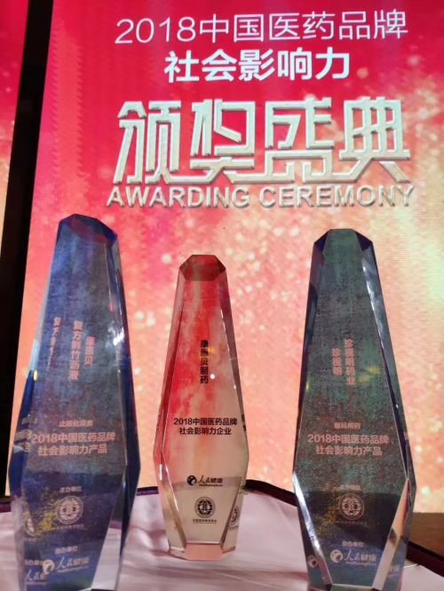 3月30日,“2018中国医药品牌社会影响力颁奖盛典”在杭州开元名都大酒店举行。浙江康恩贝制药股份有限公司获得“2018中国医药品牌社会影响力企业”、旗下的珍视明滴眼液和复方鲜竹沥液分获“2018中国医药品牌社会影响力产品”。