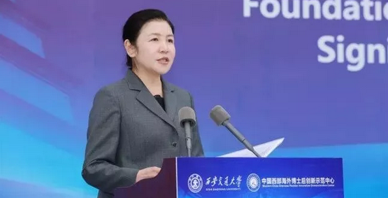 中国西部海外博士后创新示范中心,是2018年10月由人社部批准设立的国家级博士后创新平台,以西安交大发起的“丝绸之路大学联盟”和“中国西部科技创新港”为依托,旨在创新博士后培养体制机制,集聚高端人才,为经济社会发展提供有力的科技和人才支撑。陕西省委副书记贺荣在致辞中指出,中国西部海外博士后创新示范中心要以更加积极、更加开放、更加有效地引进和激励人才,围绕创新创业,加大投入力度;同时,要探索国际交流新经验,深化科技互通互访,利用丝绸之路大学联盟、中国西部科技创新港等平台优势,汇聚科技创新的强大合力;此外,要全力推进校企全面融合,帮助推进企业技术创新、科技攻关,健全成果转化机制,以助力新时代陕西追赶超越发展。