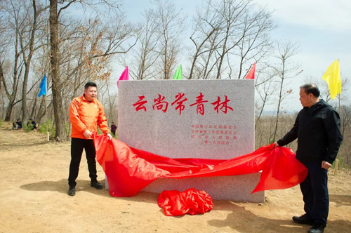 启动仪式上,蛟河市林业局局长宋立新代表蛟河市政府向云尚公司献出锦旗,云尚公司运营总裁肖建国、蛟河市林业局局长宋立新一同为“云尚常青林”揭碑,并合种第一颗“项目启动树”。随后,一同出席活动的所有领导、志愿者满怀喜悦开始植树活动,一副春意盎然的画面。