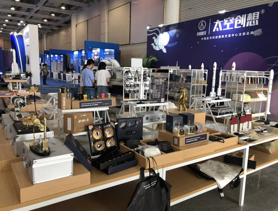 除了科技硬实力,航天文创产品也吸引了不少观众眼球,神舟飞船、火箭模型、纪念徽章,航天特色生活用品,小到水杯、抱枕、甚至冰箱贴、书签都格外吸引人。