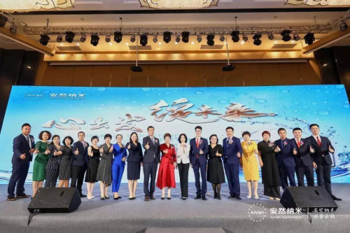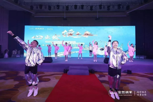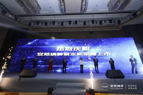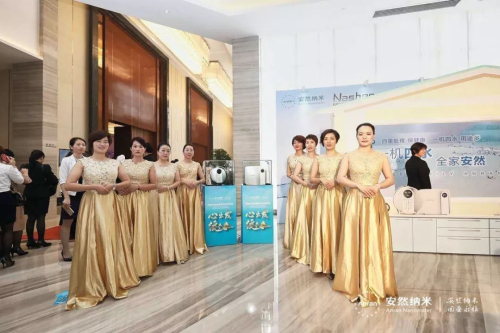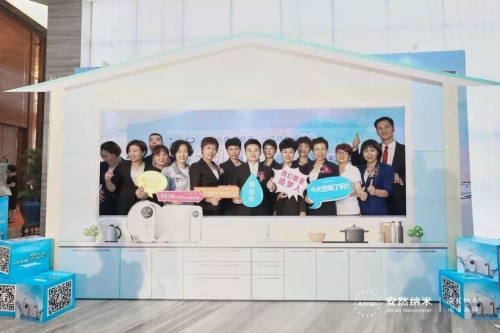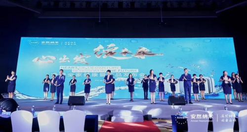 “一机四水,全家安然!”安然公司技术总裁、安然科学研究院院长张明臣先生、营销副总裁徐宁女士、华南区副总监李献先生、深圳分公司经理张震宇先生,市场优秀领导人钟小容女士、王帝力先生、吴祈文女士、谢西菁女士共同上台触摸大屏幕。伴随充满科技感的产品工艺短片,安然纳神多功能水机套装荣耀上市,家人们激动的心情溢于言表,全场掀起了高潮。